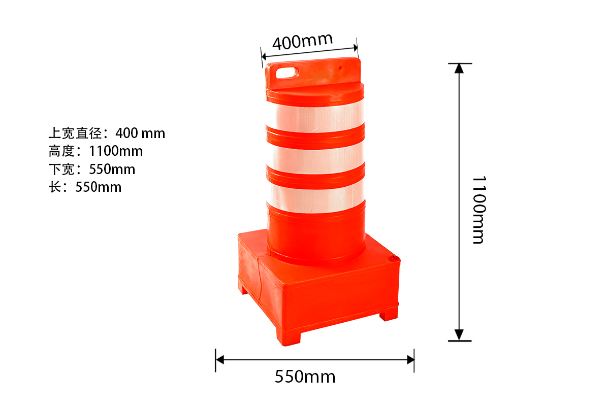 用途:其表面可贴反光膜,顶上可安装路障灯,更能吸引驾车者的眼球。