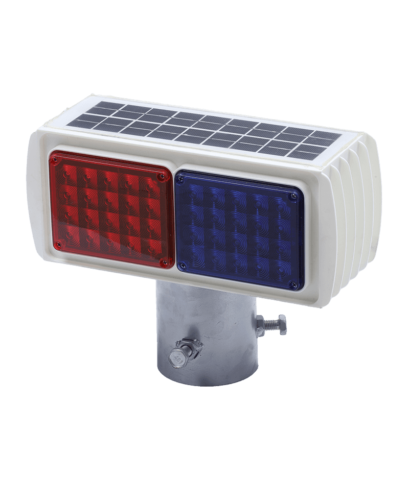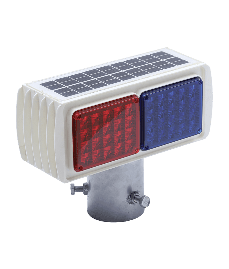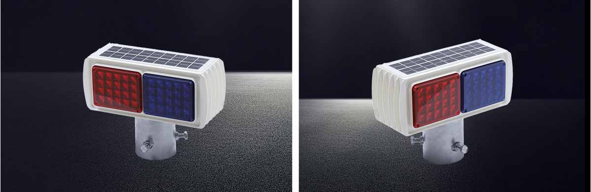 颜色:一红一蓝交替爆闪(LED灯外加聚光罩)