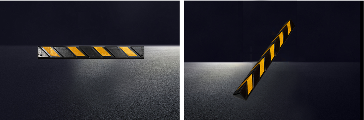 特点: 配有醒目黄色反光警示条,黑黄相同,加强白天的可视性. 嵌入式高亮度黄色反光材料,在光线不佳或夜晚更能吸引驾车者注意,提高安全性. 橡胶体软硬度适中,能有效地?;こ盗竞徒ㄖ? 安装方便, 牢固耐用。