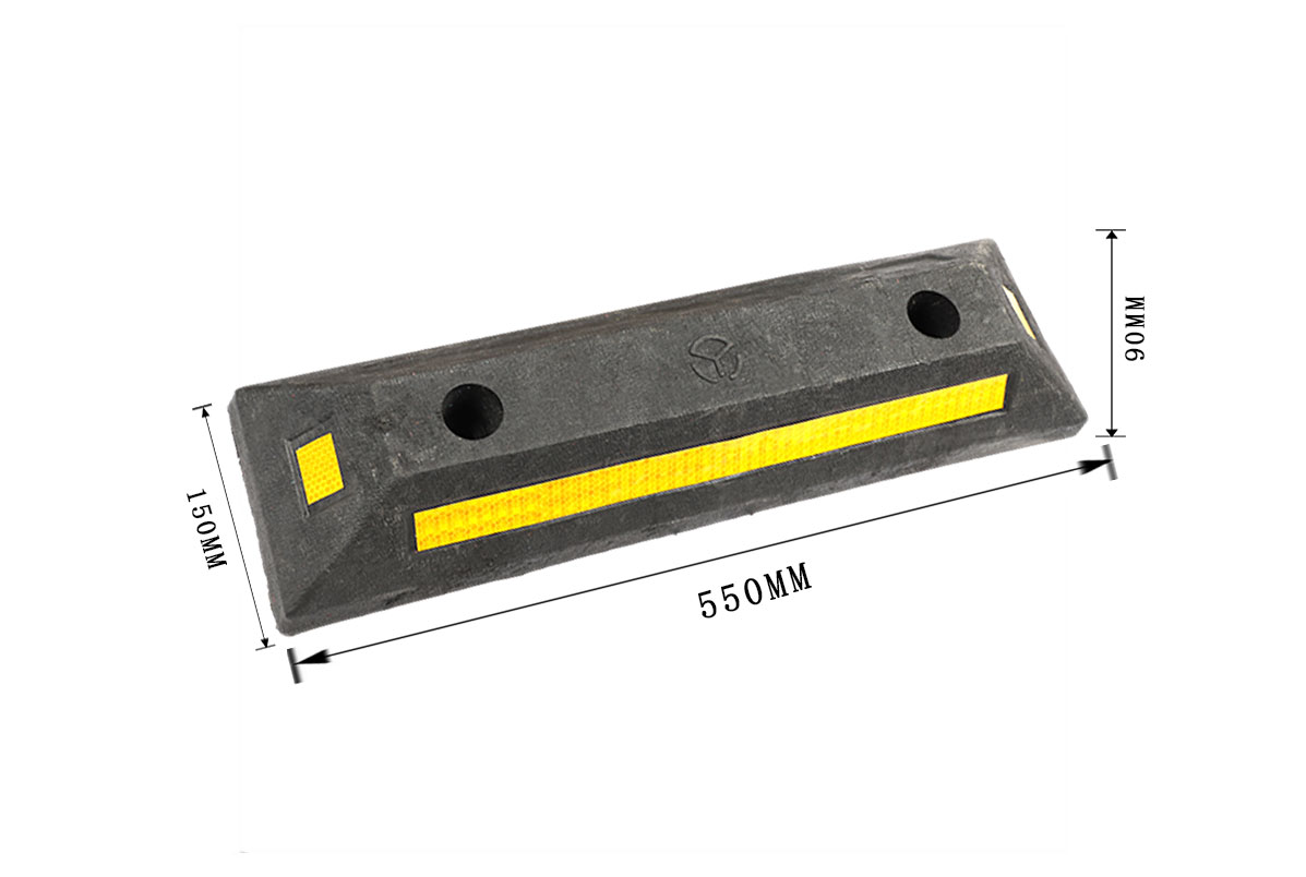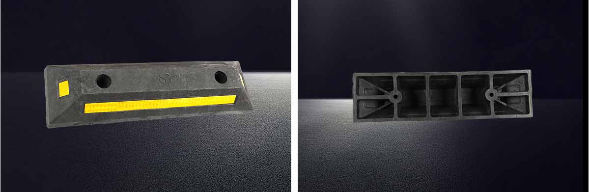 特点: 1. 一套两个,组合使用 2. 由塑料制成,抗压性能好,而且坡体有一定柔软度 3. 表面贴有耐磨、反光亮度较高的黄色晶彩格,使得车位停止器黑黄相间,特别醒目,晚上黄色晶彩格反射光线 4. 安装稳定,在车辆撞击时不会滑动 5. 特殊工艺确保颜色持久,不易褪色 6. 安装简单,维护方便,稳固牢靠 7. 美观大方,有效规范停车秩序